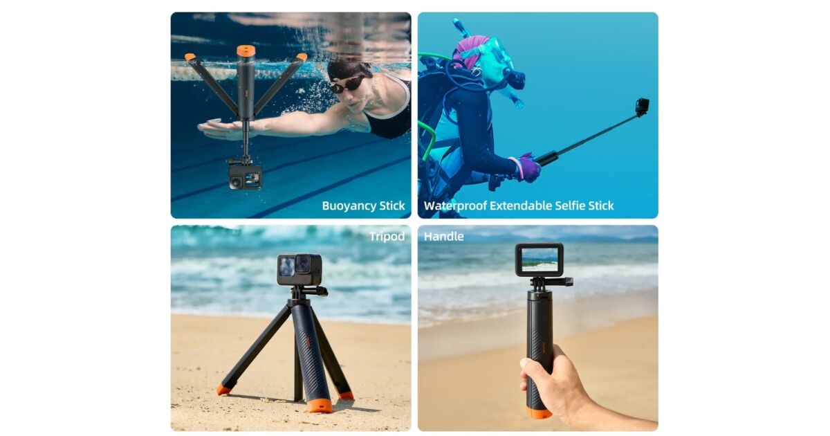 Селфи стик с дръжка за употреба във вода, TELESIN S1-TSS-02, многофункционален, съвместим с GoPro Hero 13, 12, 11, 10, 9, 8, DJI Osmo Action 5 Pro, 4, 3, Insta360 Ace Pro 2