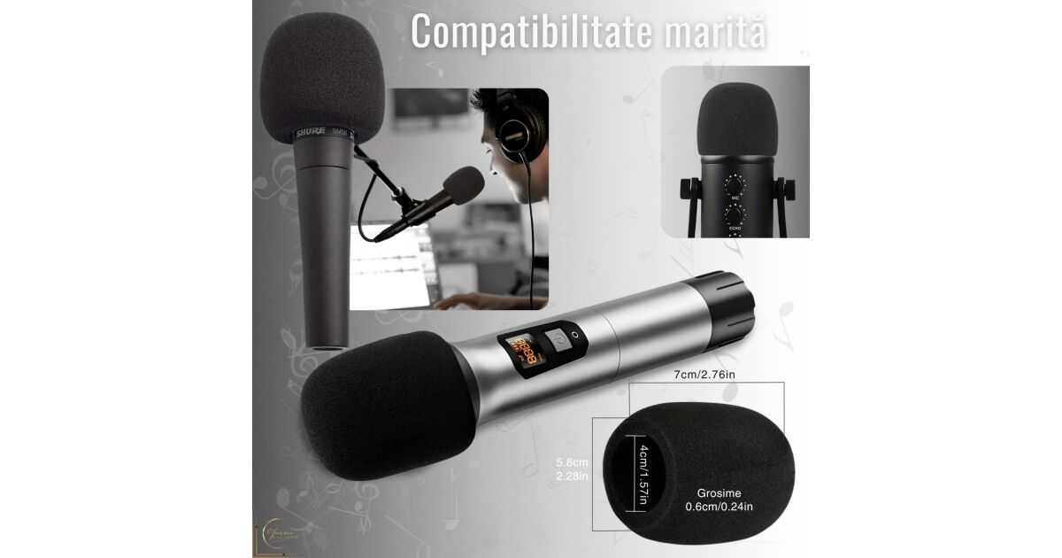Гъбен калъф за микрофон, перещ се и многократно използваем, 7x5, 8 см, черен, намалява фоновия шум, предпазва от прах и слюнка, подходящ... описание на...