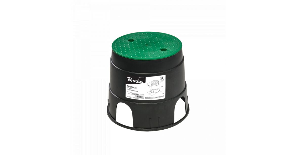 Кръглата клапанна кутия Bradas е идеалното решение за защита на напоителни клапани и друго градинско оборудване. Кутията е с диаметър 30 см и е изработена от издръжлив материал, което я прави устойчива на атмосферни влияния и механични повреди.
