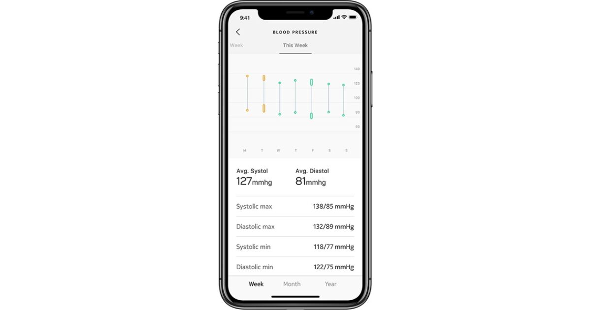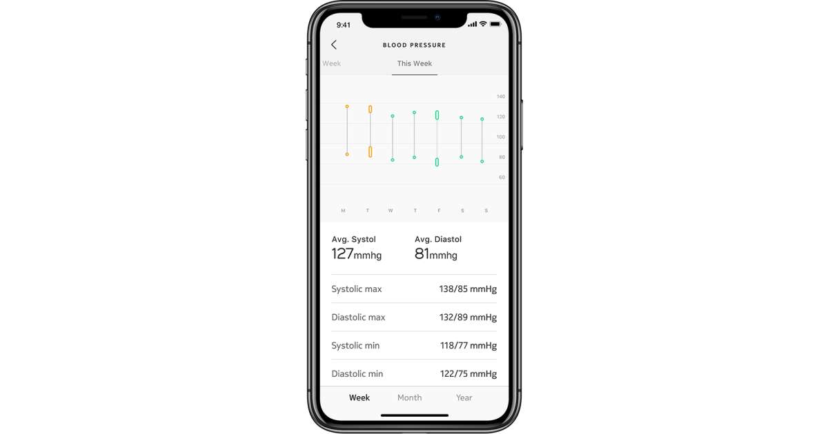 - Прегледност: Следете кръвното си налягане с течение на времето в приложението Health Mate.