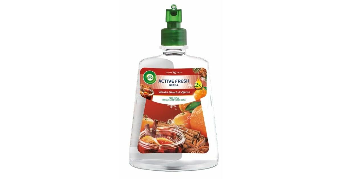 Формулата на нашия автоматичен спрей за освежаване на въздуха съдържа 2 пъти повече естествени етерични масла**, разработени така, че да ви осигурят възможно най-приятното усещане за аромат. Потопете се в аромата на сладък плодов пунш с ароматна смес от сочна ябълка, горски плодове, канела и подправки с нотка на портокал - създаващи истинска зимна уютна атмосфера! Неутрализиращите миризми молекули се борят с неприятните миризми. Формулата му на водна основа не съдържа фталати, пропеланти и оцветители. Домът ви ще ухае невероятно свежо и приветливо.