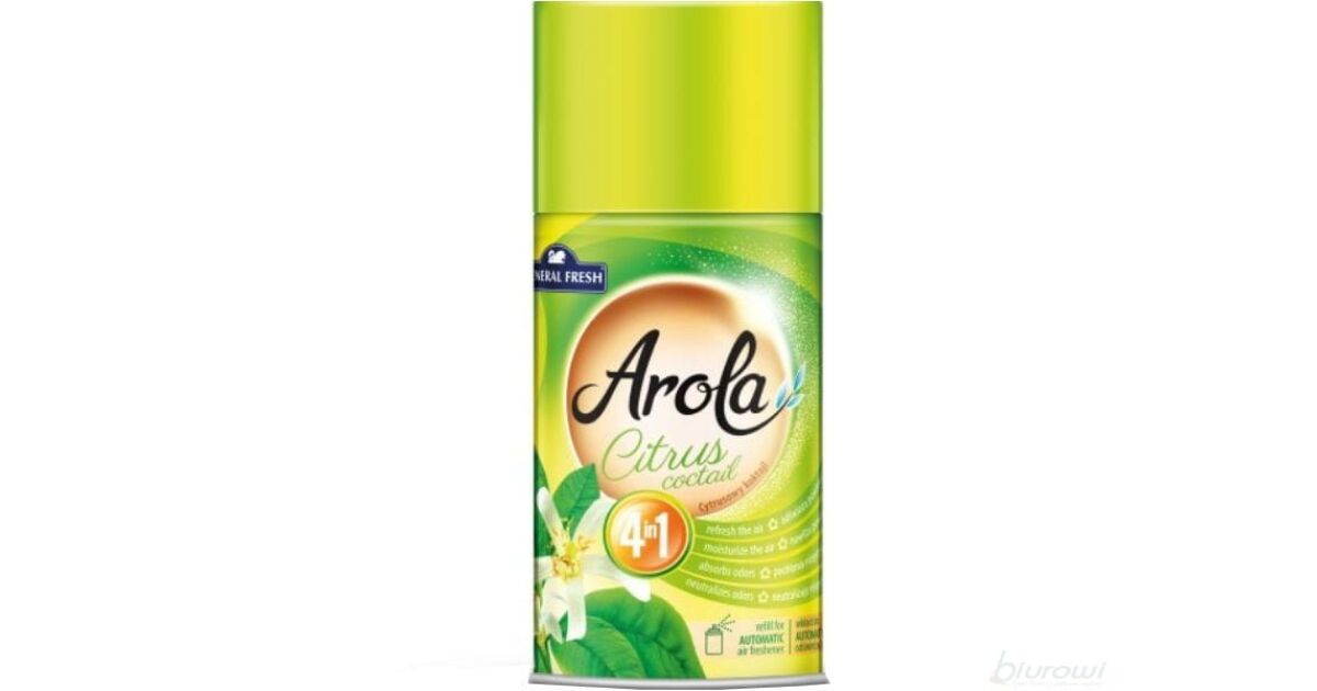 Пълнителят за автоматичен ароматизатор за въздух Arola 4in1 Citrus от General Fresh освобождава дома ви от неприятни миризми и осигурява приятна атмосфера. Насладете се на интензивен аромат, вдъхновен от природата.