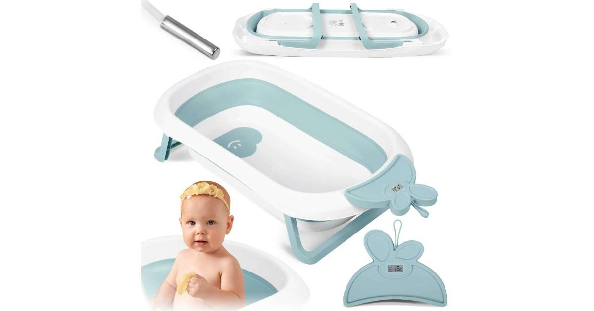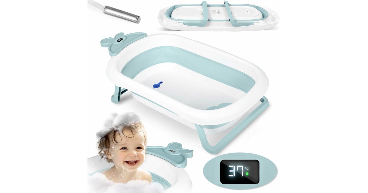 Сгъваема бебешка вана Ricokids с вграден термометър: Удобно и безопасно къпане 👶