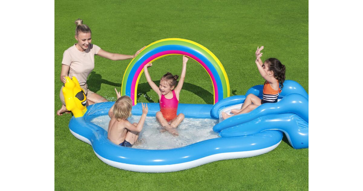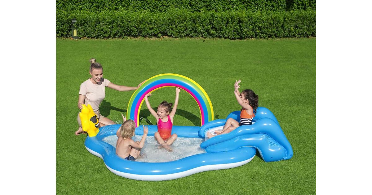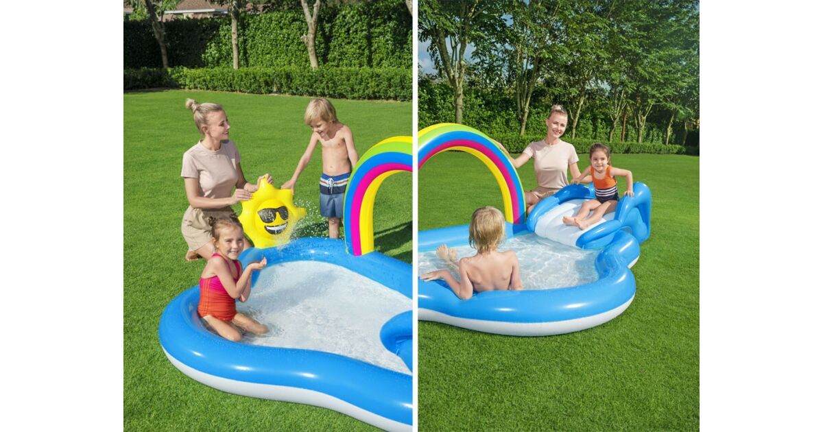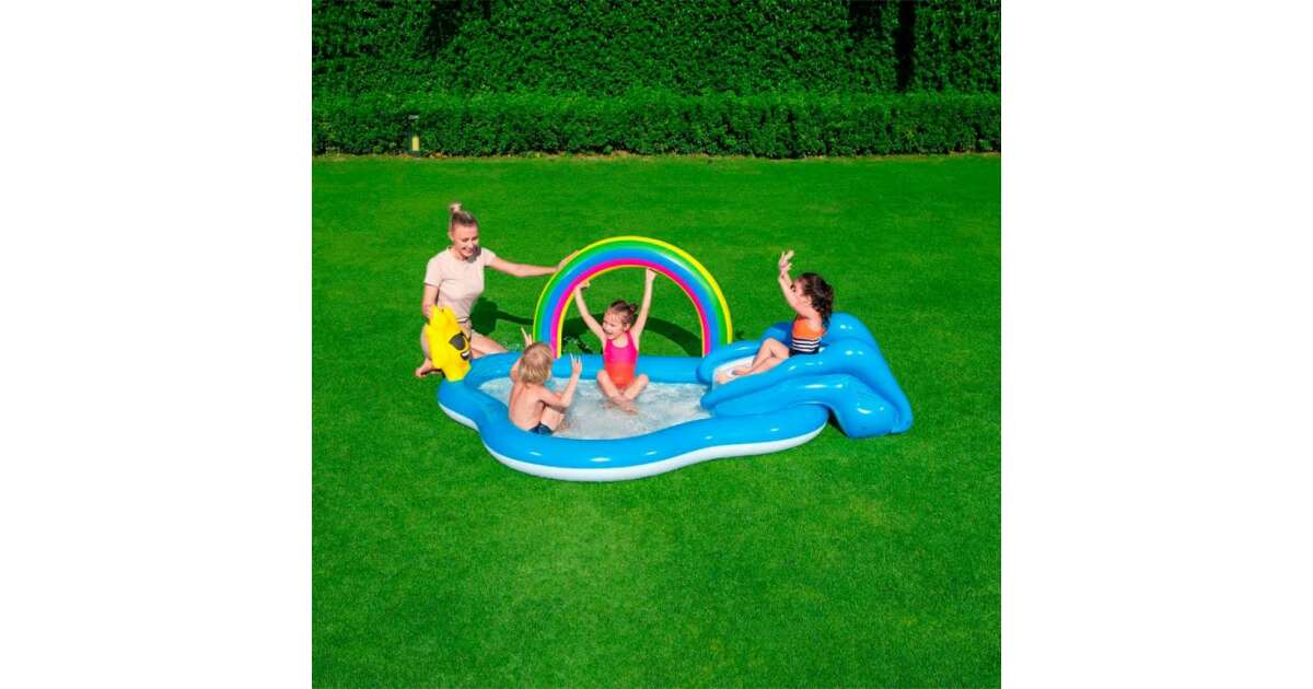 Детският басейн Bestway Rainbow N' Shine е перфектният избор за градината, за да може вашето дете да прекара летните дни безопасно и весело!