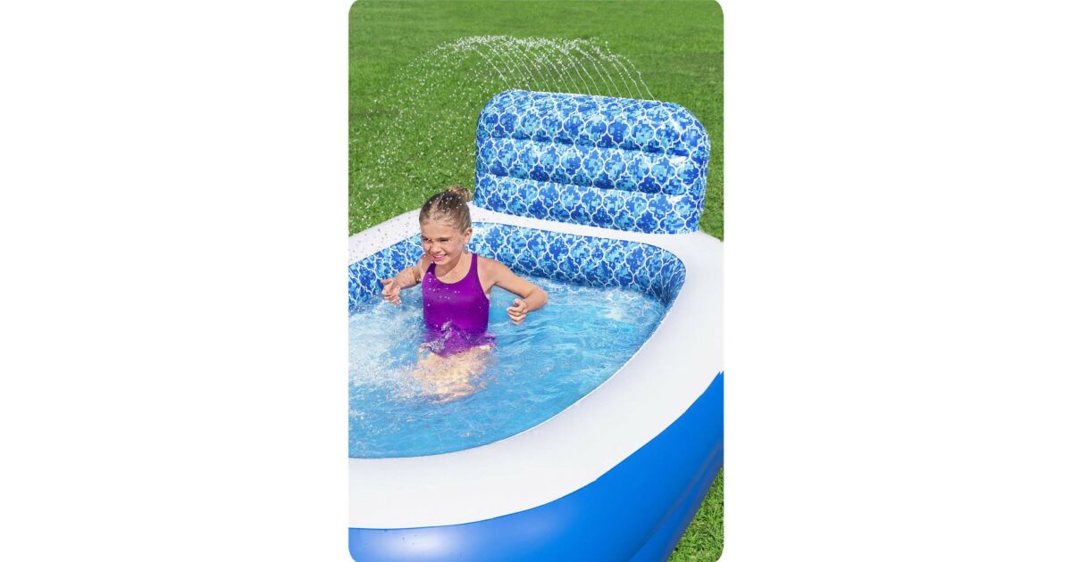 Този Bestway семеен надуваем басейн е перфектният избор за горещите летни дни. В него удобно се побира цялото семейство, а вградената функция за пръскане осигурява допълнително забавление за децата. Меките, надуваеми стени са нежни към кожата, така че и малките могат да играят безопасно в него.