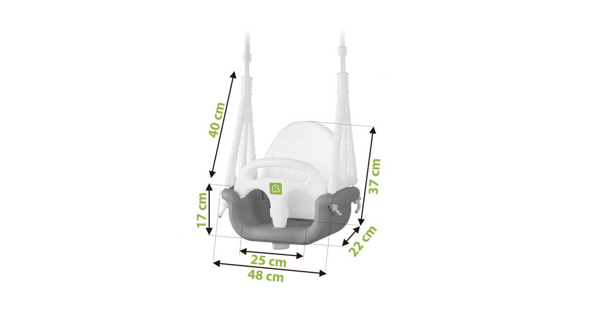 Здравите въжета с дължина до 130 см могат да се регулират с метални щипки и са защитени със специален пластмасов материал, който предпазва ръцете на детето от евентуално протриване и увеличава стабилността по време на люлеене.