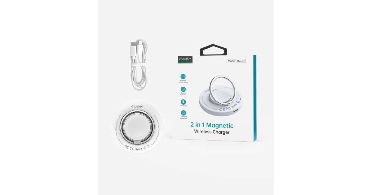Безжично зарядно устройство 2-в-1 Choetech T603-F, държач, бял (T603-F) описание на...