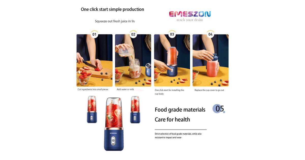 Emeszon Mini Преносим Блендер - 300ml: Свежи напитки навсякъде и по всяко време! 🍹