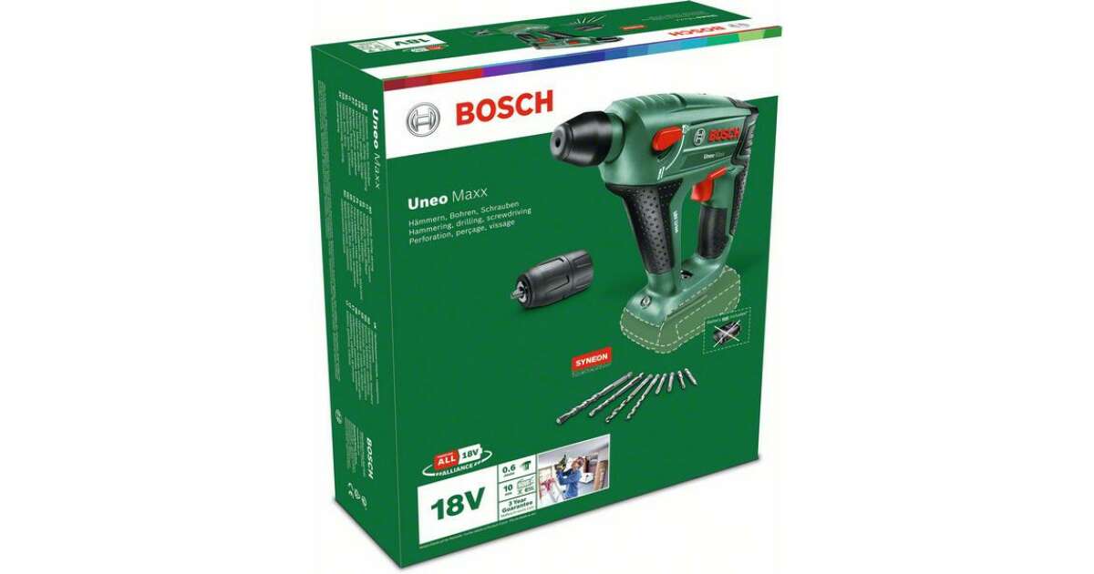 Този акумулаторен перфоратор Bosch Uneo Maxx е инструмент 3 в 1, който позволява пробиване, завинтване и ударно пробиване. Отличен избор за домашни майстори и малки ремонти.