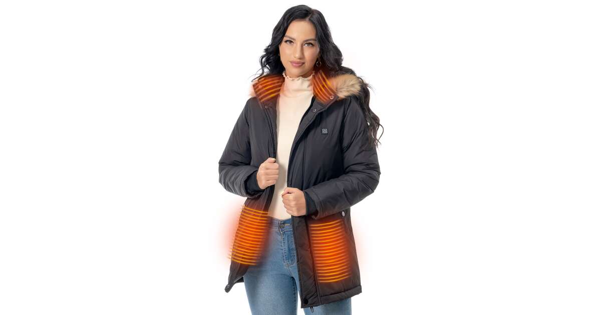 Dollcini, Елегантно отопляемо дамско палто, зимно палто, 9 нагревателни елемента с USB система за отопление, ветроустойчива електрическа изолация, черно, 401251, 3XL описание на...