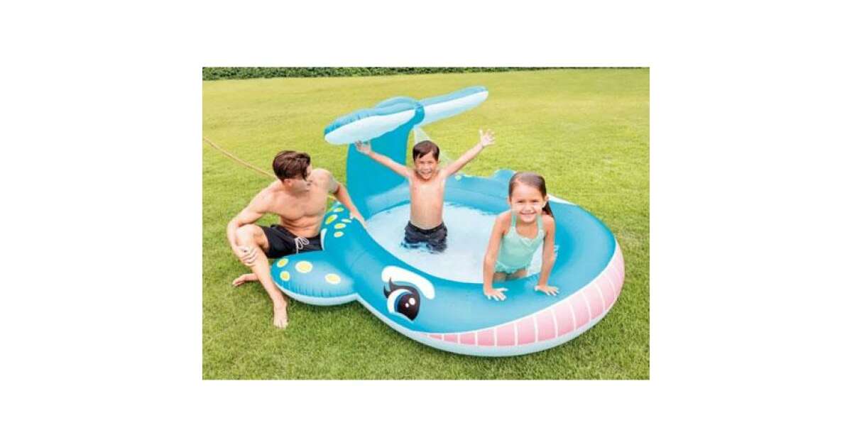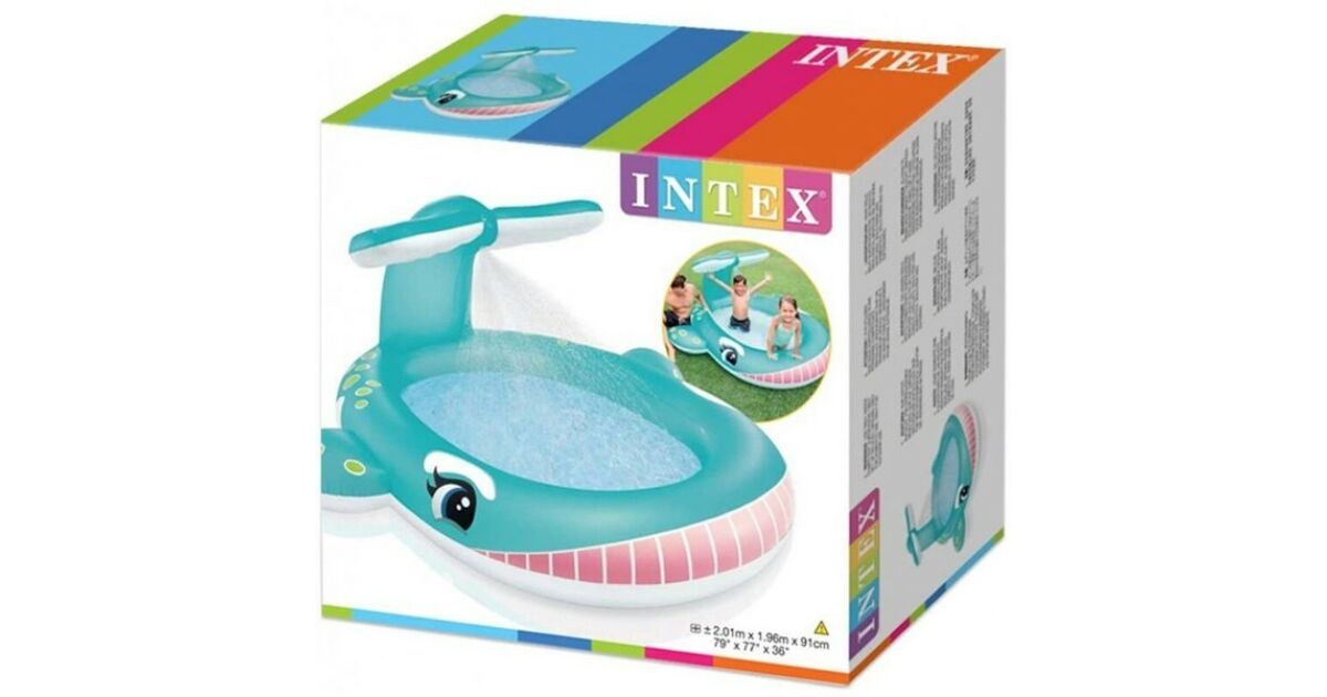Този весел басейн Intex с форма на кит гарантира лятно забавление за най-малките! Изработен е от здрав и издръжлив винил, така че е безопасен за употреба в градината. Вграденият спрей ще превърне играта във водно приключение за децата.