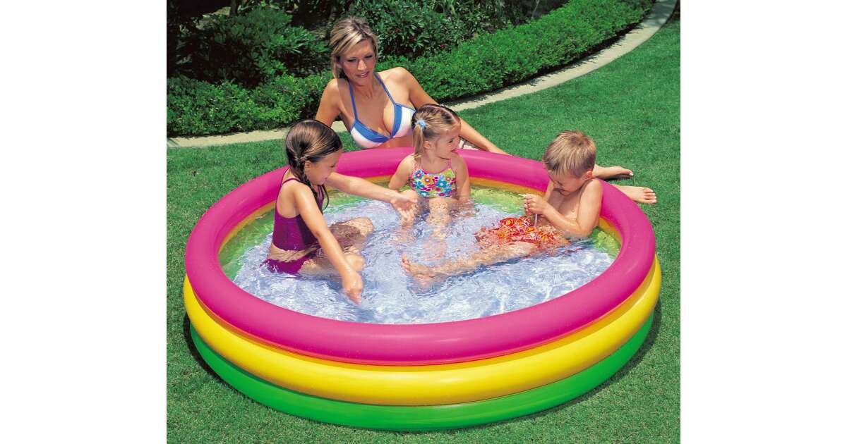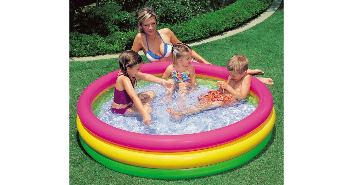 Забавно забавление за летните дни! Този цветен надуваем басейн Intex е перфектен за градината или терасата, за да се радват децата ви на безопасно и весело пръскане. Мекото, надуваемо дъно прави играта по-удобна, а трите надуваеми пръстена осигуряват допълнителна стабилност.