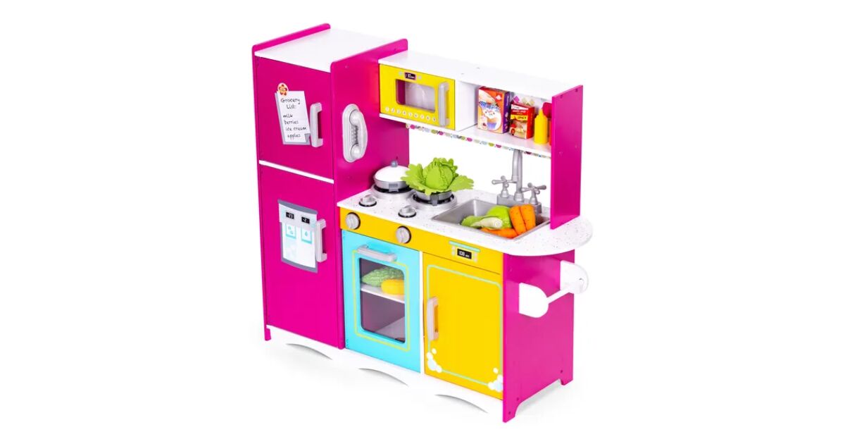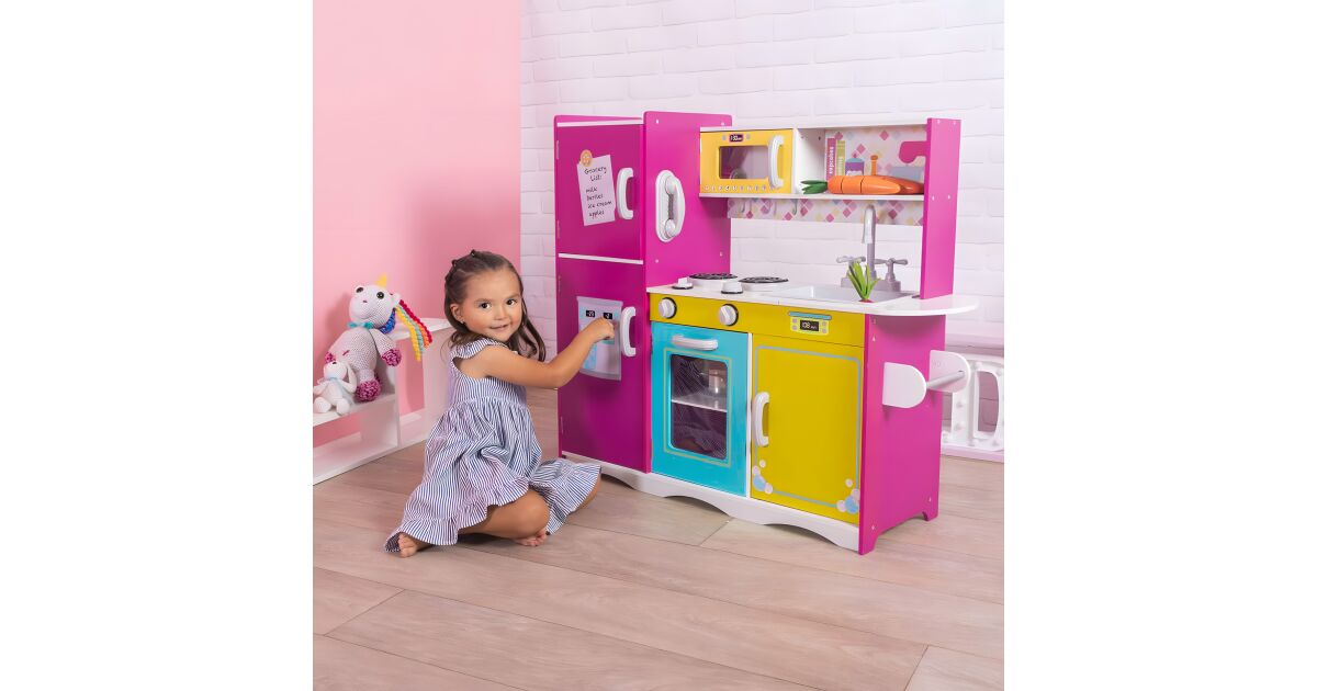 Тази цветна и забавна дървена играчка кухня е перфектният подарък за всеки малък готвач! Пълна с реалистични детайли и функции, тази кухня ще осигури часове забавление.