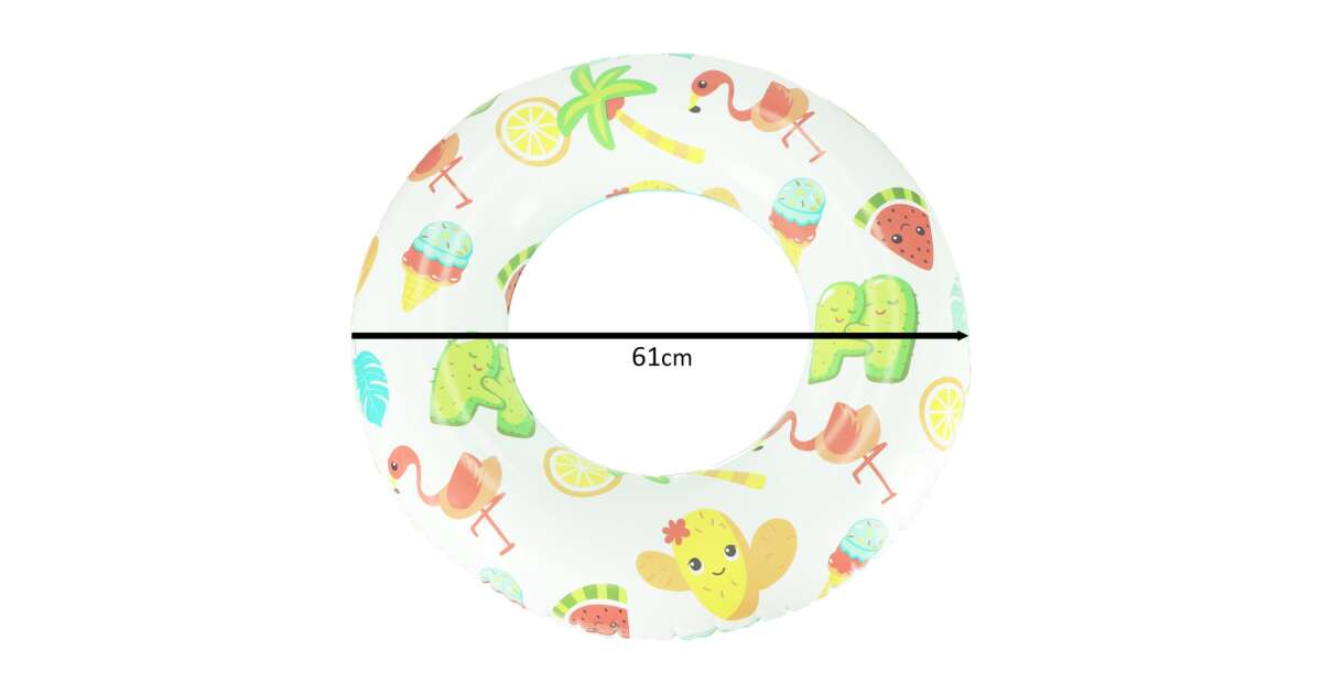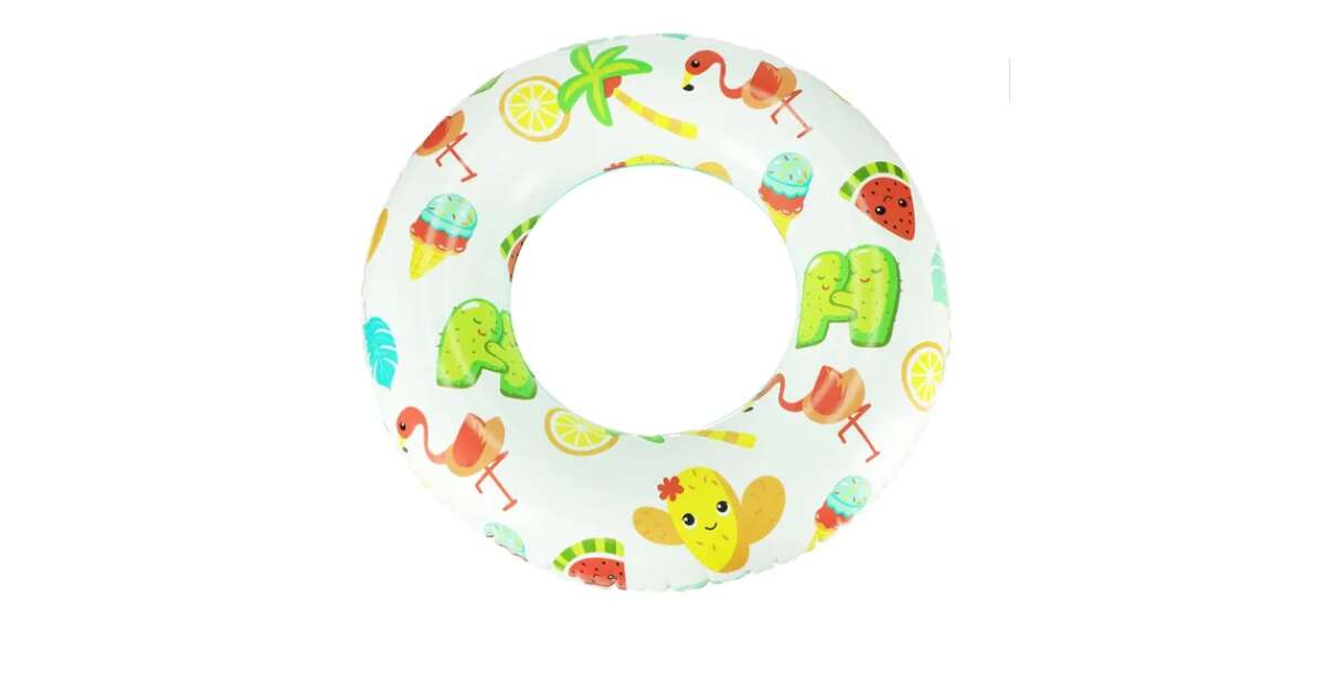 Този весел, цветен надуваем пояс за плуване е идеален за летни приключения във водата! ☀️ С диаметър 61 см, поясът за плуване осигурява удобно и безопасно плуване за най-малките. Красивите мотиви с кактуси и фламинго ще оживят плажа или плуването в басейна.