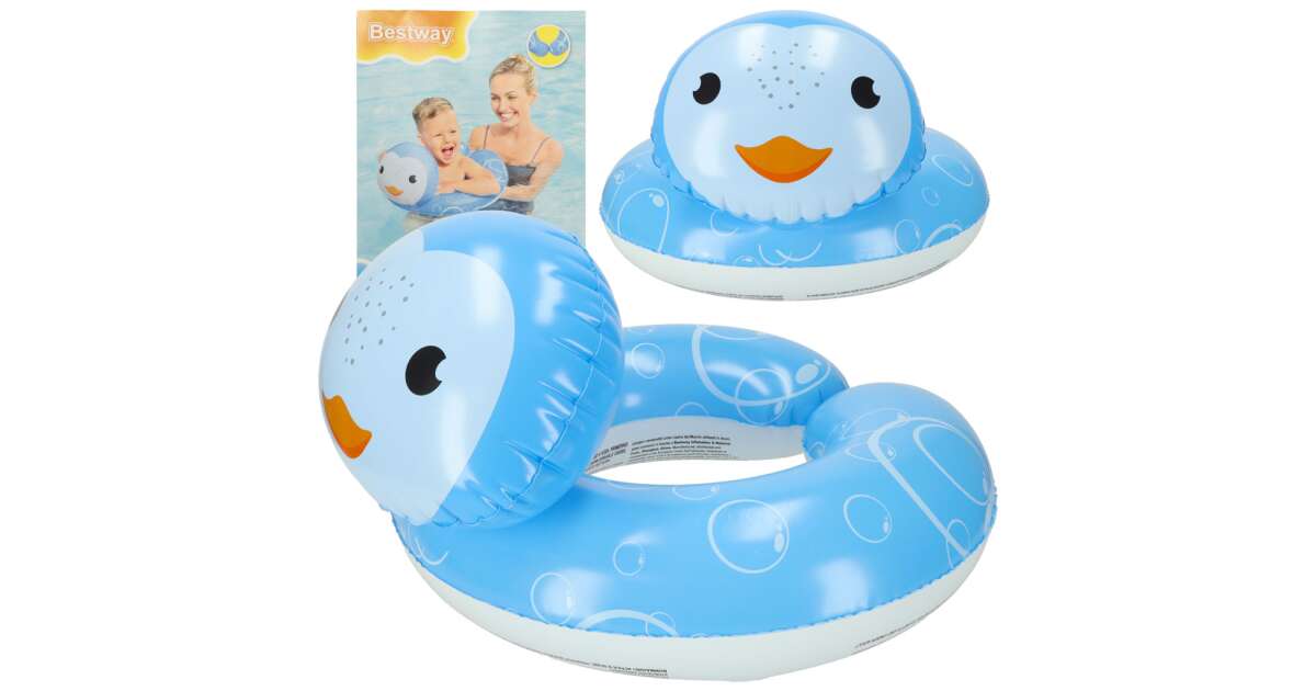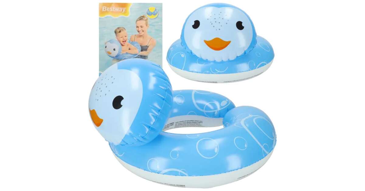 Този надуваем плаващ пръстен Bestway е перфектен за най-малките, за да се радват безопасно и весело на водата. Дизайнът с патенце е забавен и привлекателен за бебетата, а мекият, удобен материал гарантира комфорт.