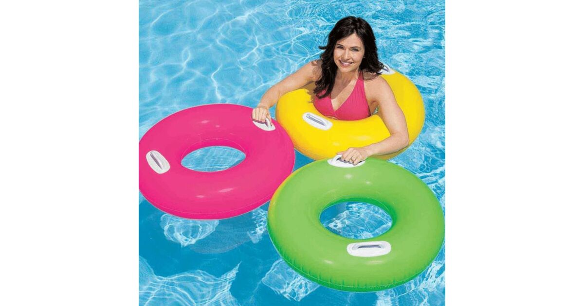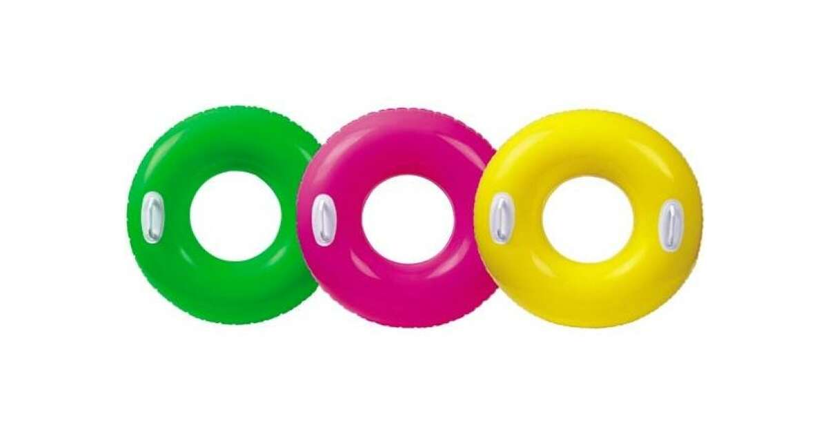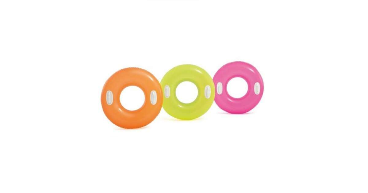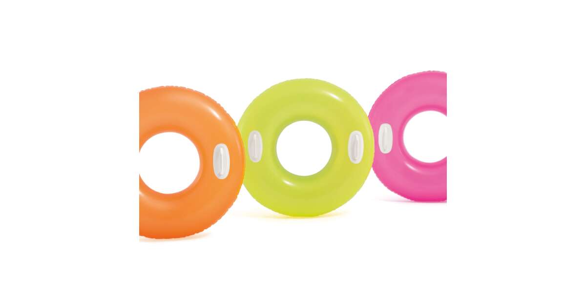 Придържайте се към лъскавата повърхност на цветната плаваща гума в басейна! Плаващата гума Hi-Gloss grip представлява едноцветен кръгъл плаващ пръстен с две ръкохватки. С плаващата гума не можете да потънете във водата, а ако седнете върху нея, можете да се наслаждавате на слънцето в комфорт! Плаващата гума е изработена с предпазен клапан, лесно се надува, в опаковката е включена и лепенка за ремонт. Плаващата гума Hi-Gloss с ръкохватка е с диаметър 76 см в надуто състояние. Играчките се предлагат отделно. Моля, посочете в коментара коя версия желаете; Този продукт се предлага в няколко версии и асортименти, цената е за 1 продукт.