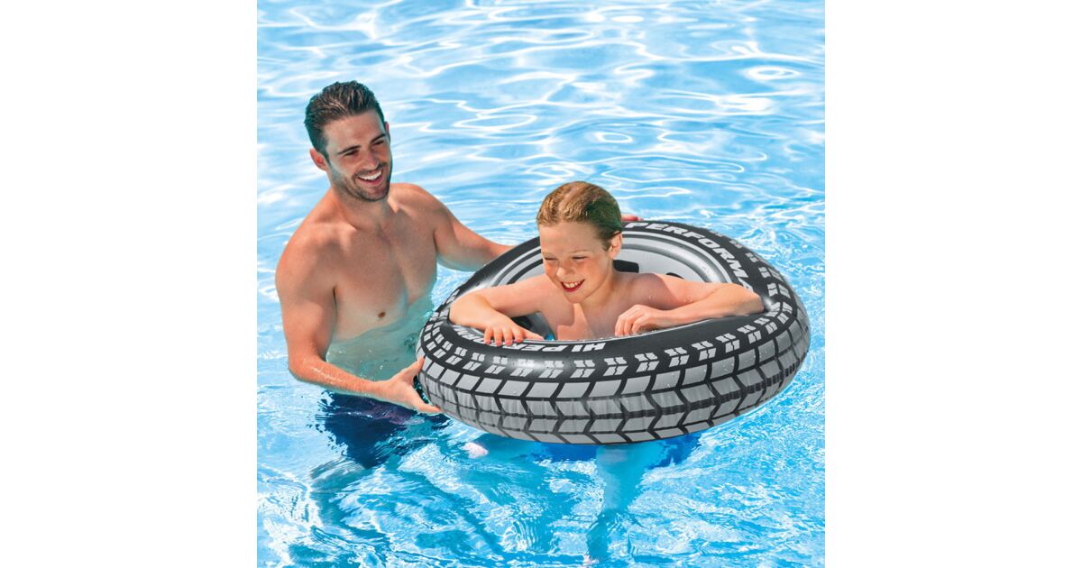 Как можете да покажете по време на ваканция, че сте запалени по колите? С модел на плаващи гуми! Деца и възрастни могат да се насладят на плаването във водата с надуваем висококачествен пояс от Intex. Поясът е изработен от устойчив PVC с дебелина 0,23 мм и има външен диаметър от 91 см. Той е идеален за учене на плуване, водни игри и релаксация - защото няма нищо по-хубаво от това да плавате под синьото небе.