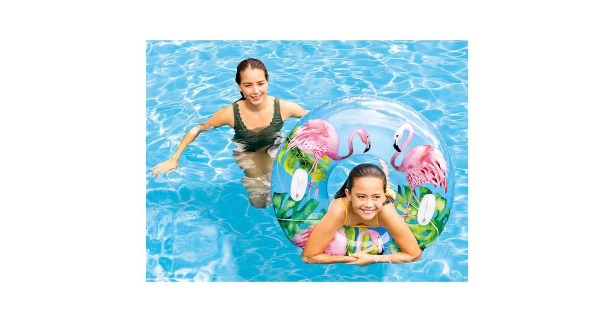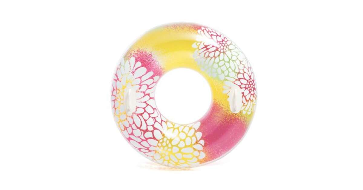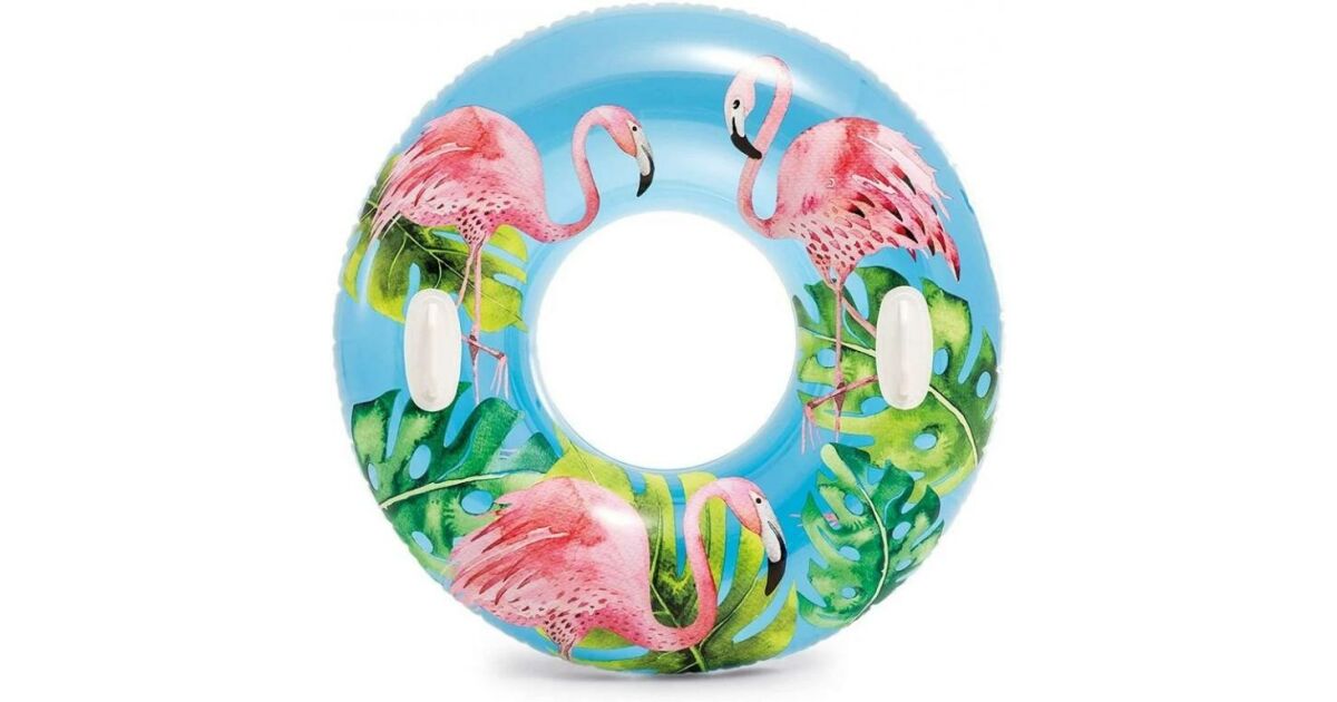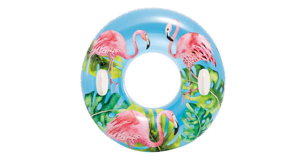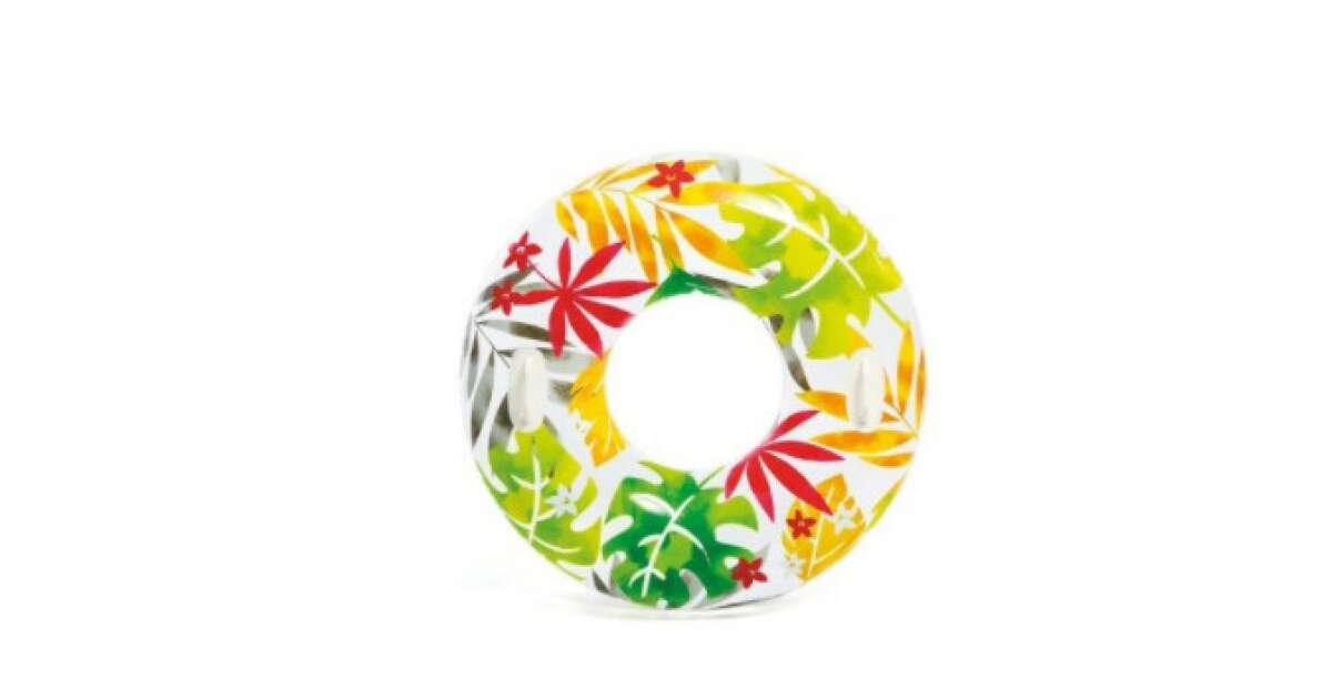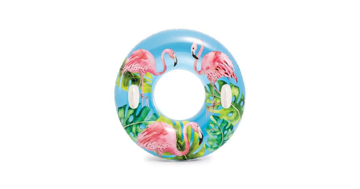 Тази Intex ушна гума с диаметър 97 см е перфектният избор за летни забавления във водата, както за деца, така и за възрастни! Изработена от издръжлив PVC материал, ушната гума е с високо качество и ще ви осигури забавление за дълго време. Двете практични дръжки улесняват задържането във водата и практикуването на плуване. Веселите, цветни шарки (може да избирате между фламинго и тропически цветя) ще направят лятото ви още по-забавно! 🌺