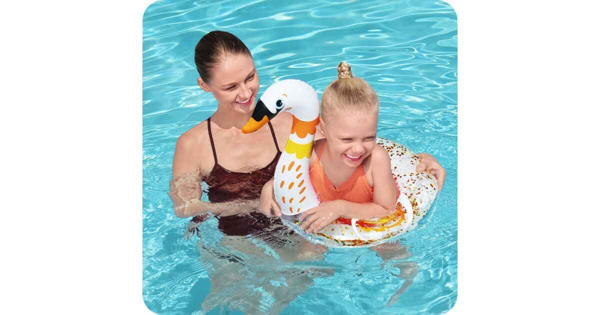 Bestway Плувен пояс лебед с блясък - 61 см - Забавно плискане за най-малките! 🦢✨