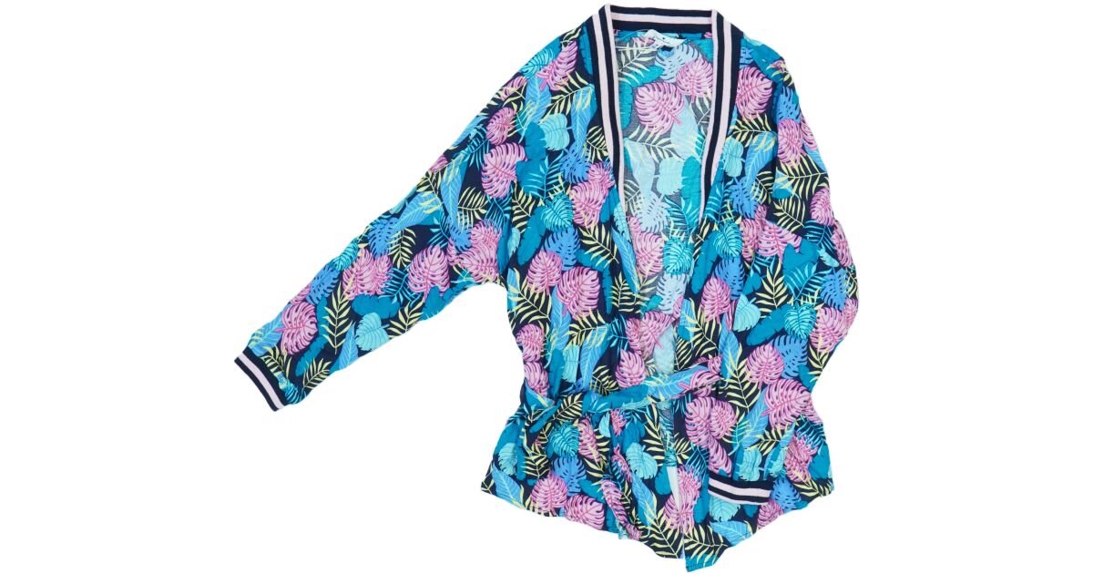 Този симпатичен, многоцветен кардиган е перфектен избор за пролетния и есенния сезон. Удобен за носене, с весела шарка.