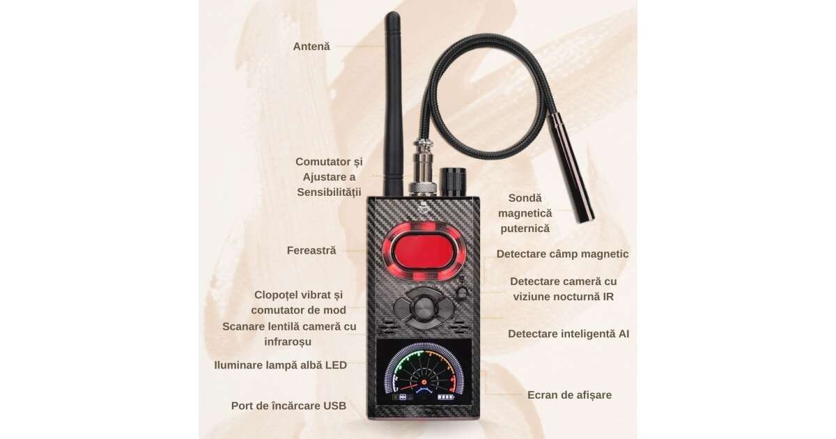 Този усъвършенстван детектор за шпионска техника ви защитава от скрити камери, микрофони, GPS и GSM тракери. Може да се използва у дома, в офиса или на път, за да запазите личния си живот.