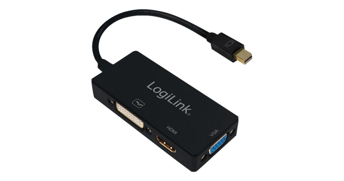 Адаптер Logilink, Mini DP към HDMI / DVI / VGA, черен (CV0110)