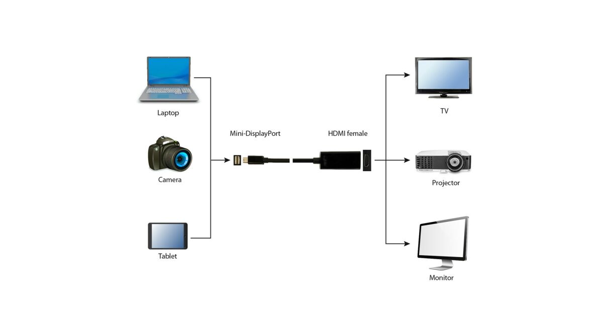 - Mini DisplayPort (мъжки) - HDMI (женски) конектор: Просто свържете устройството си.