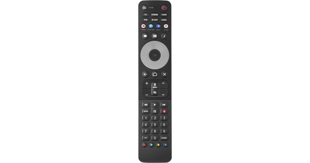 - 4 бързи бутона за приложения: Бърз достъп до любимите ви стрийминг услуги (Netflix, YouTube, Amazon Prime, Disney+)