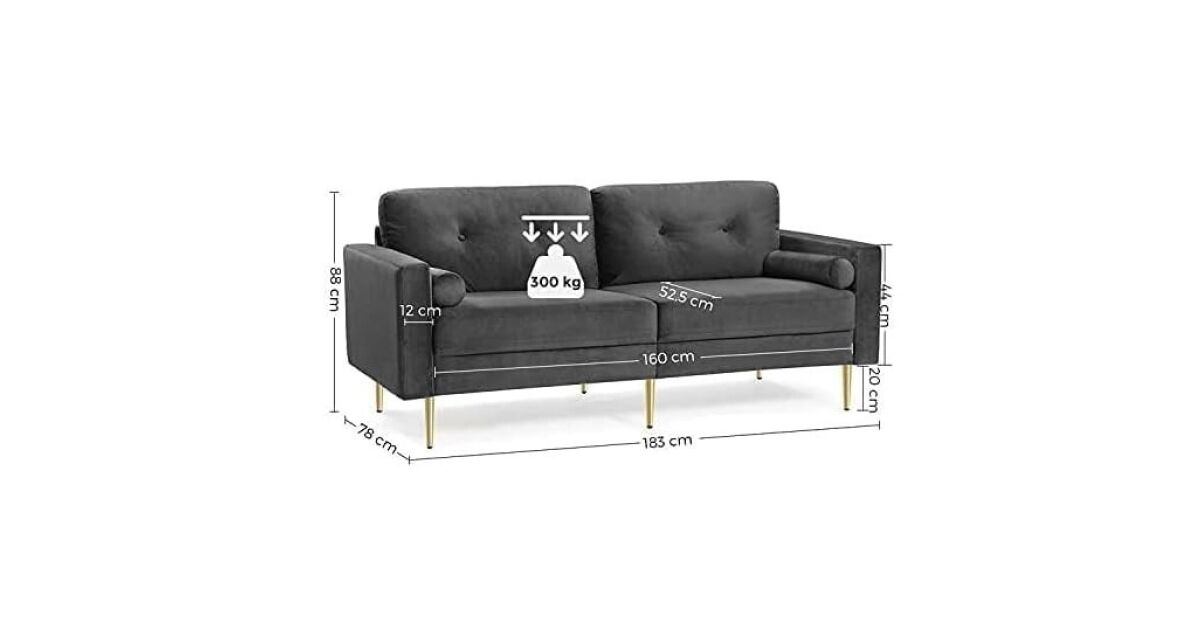 Диван Vasagle, 3-местен, кадифе/дърво/метал, сив/златист, 78 x 88 x 183 см описание на...