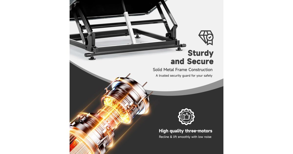 - Система с три мотора: Облегалката, поставката за крака и функцията за повдигане могат да се регулират отделно за максимален комфорт.