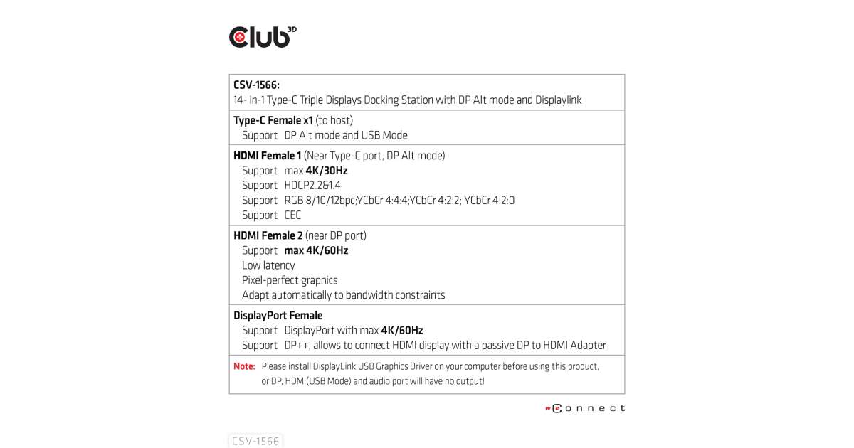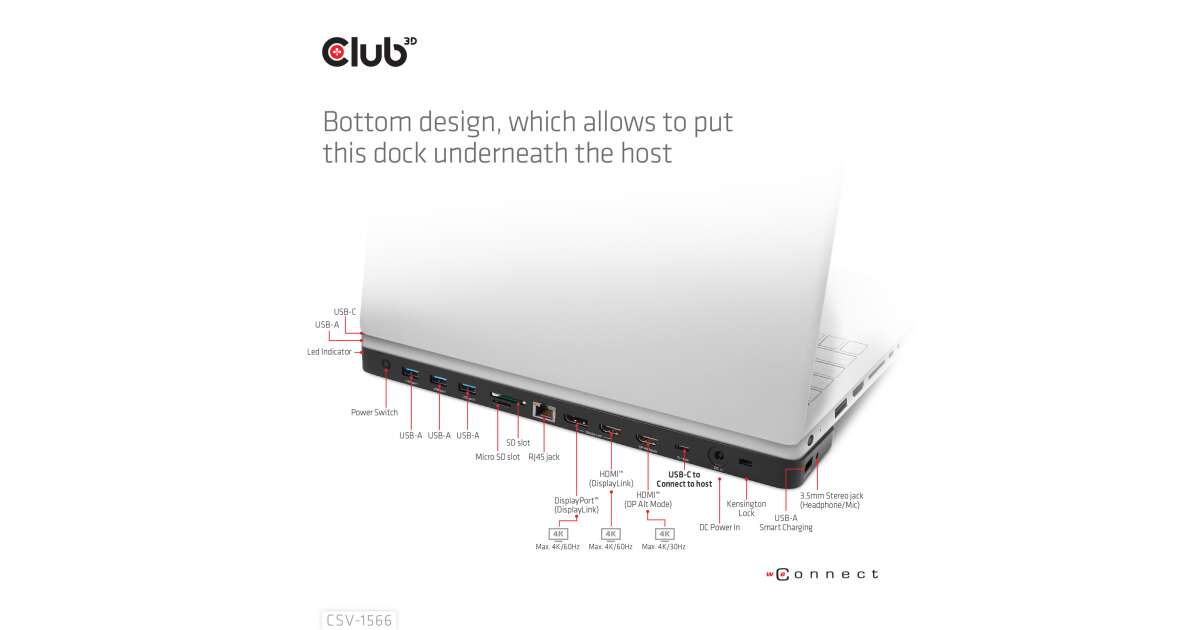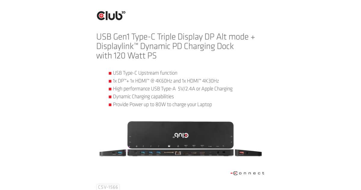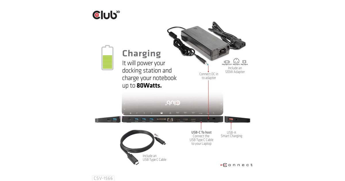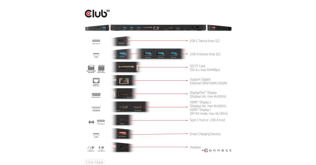 CLUB3D CSV-1566 докинг станция USB 3.2 Gen 1 (3.1 Gen 1) Type-C Черен (CSV-1566) описание на...