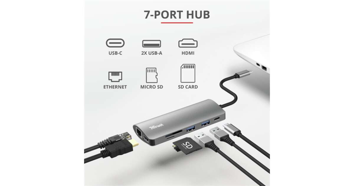TRUST 7 в 1 USB-C Мултипорт Адаптер: Перфектно свързване за всички устройства 💻
