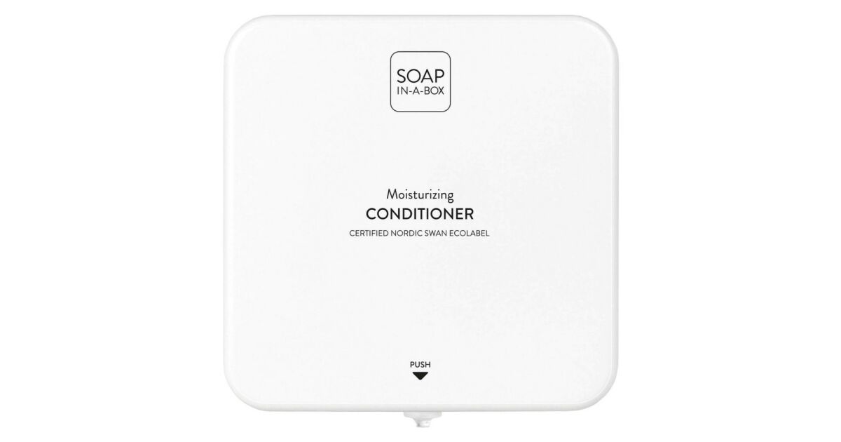 Soap-In-A-Box fényes fehér hajkondicionáló adagoló, előlap отзиви