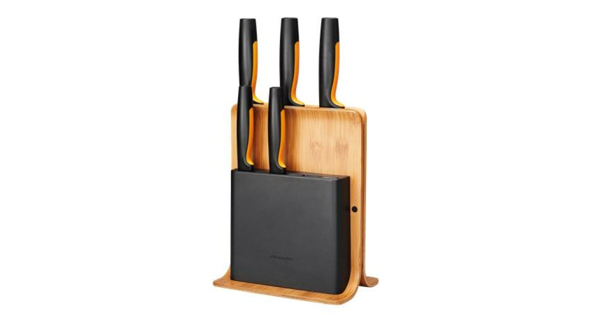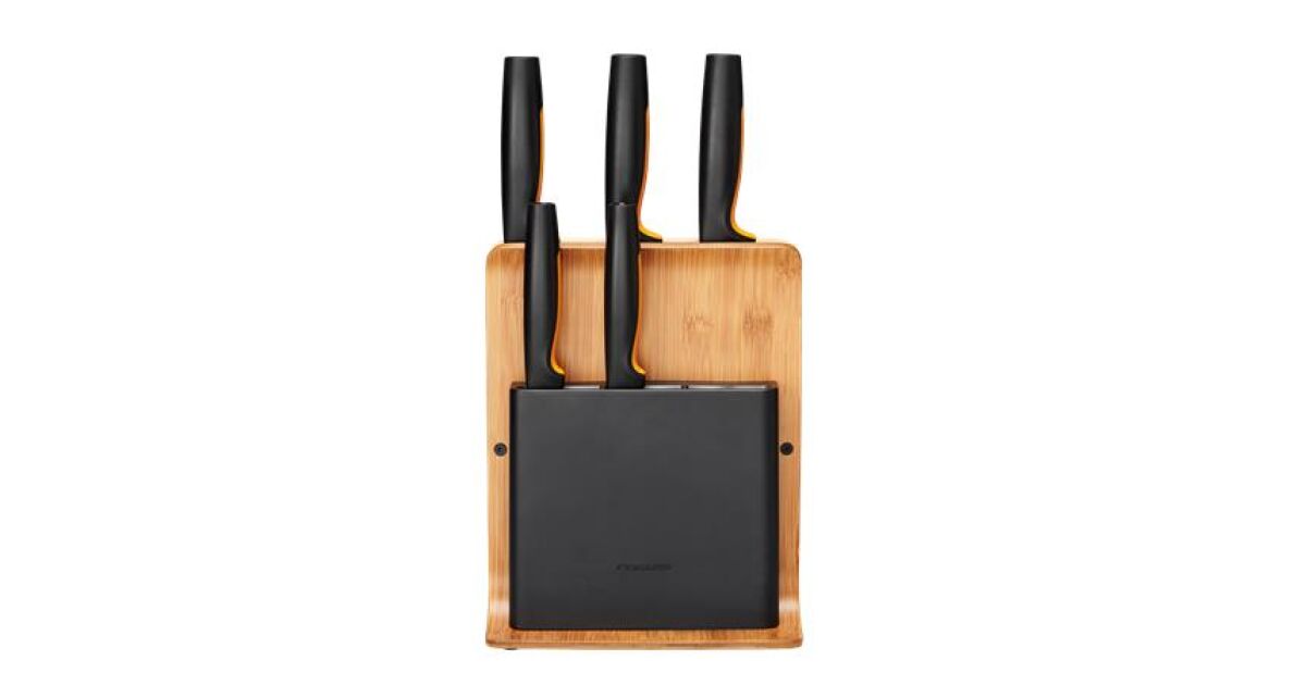 Блок за ножове Fiskars Functional Form в бамбуков държач с 5 ножа