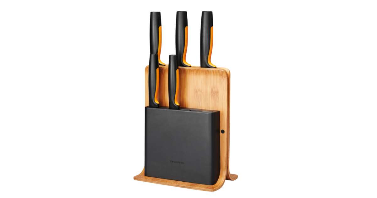 Блок за ножове Fiskars Functional Form в бамбуков държач с 5 ножа описание на...