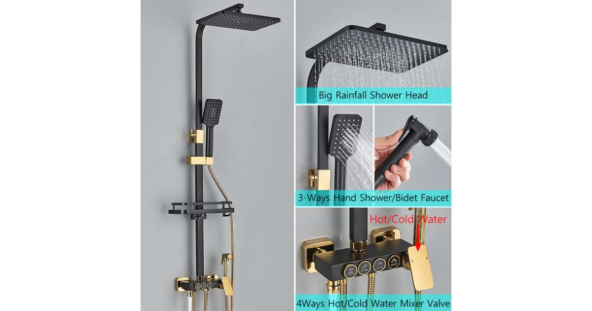 Насладете се на разкошното душ изживяване с тази стилна и функционална душ колона Blackswan! Черно-златната цветова комбинация ще придаде елегантен вид на вашата баня, а висококачествените материали и прецизно проектираните функции гарантират дълъг живот и максимален комфорт.