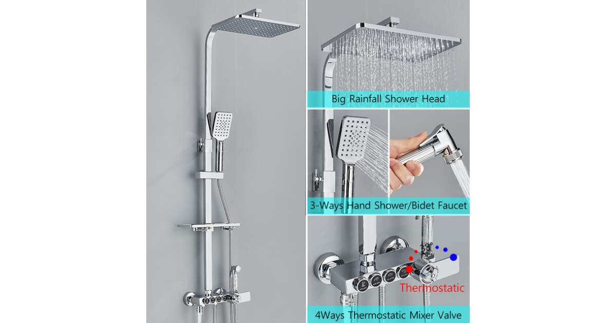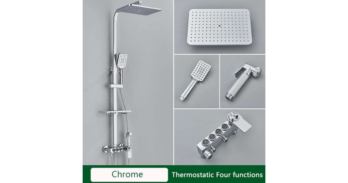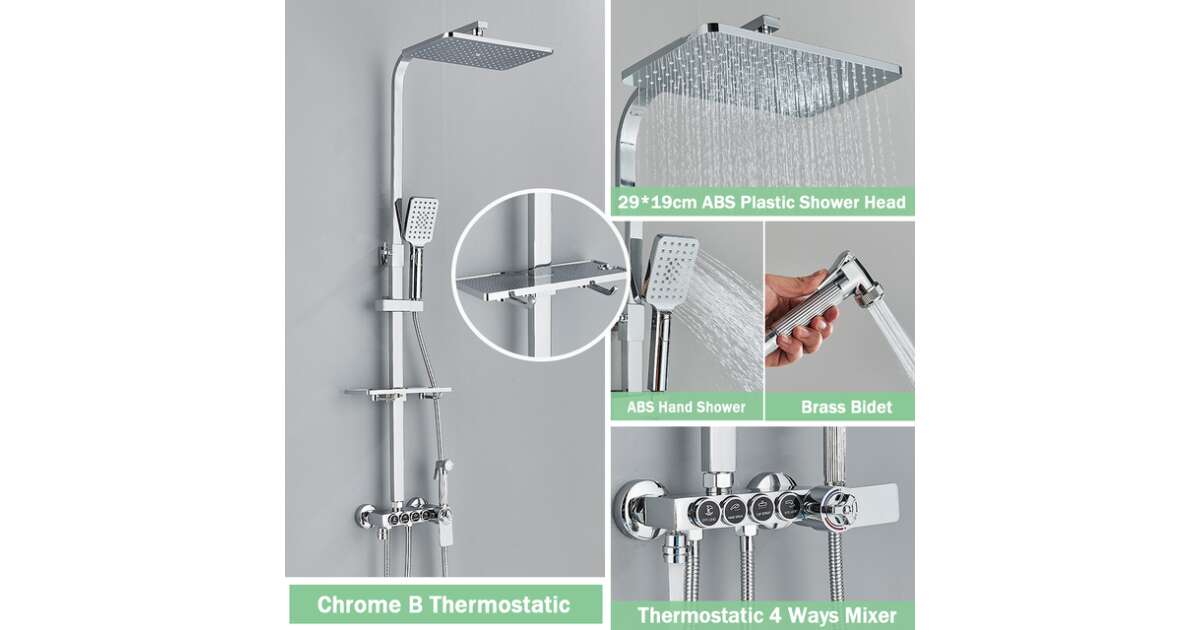 Душ колона, Blackswan, тип M146, регулируем модел хром, с термостат, подвижен кран, душ с високо налягане и рафт, размер 120 см отзиви
