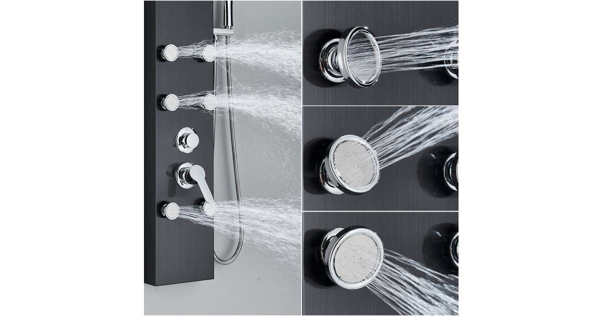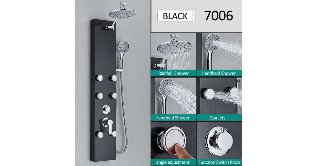 Този стилен, 111 см висок черен душ панел е перфектният избор, ако искате да се наслаждавате на СПА удоволствието си и у дома. Изработен от висококачествени материали, панелът е с антикорозионно покритие, за да гарантира дълъг живот.