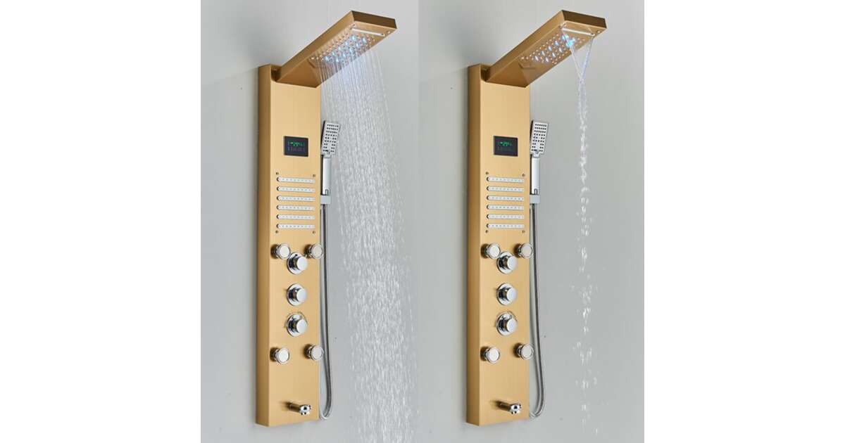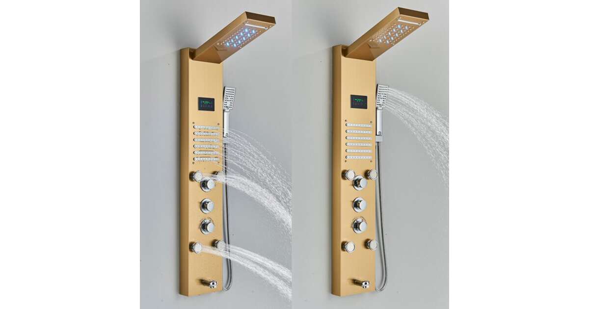 Душ панел, Blackswan, Тип M8004, златен модел с кран, дигитален дисплей, LED и SPA функции, размер 121 см