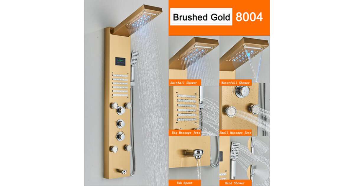 Душ панел, Blackswan, Тип M8004, златен модел с кран, дигитален дисплей, LED и SPA функции, размер 121 см описание на...