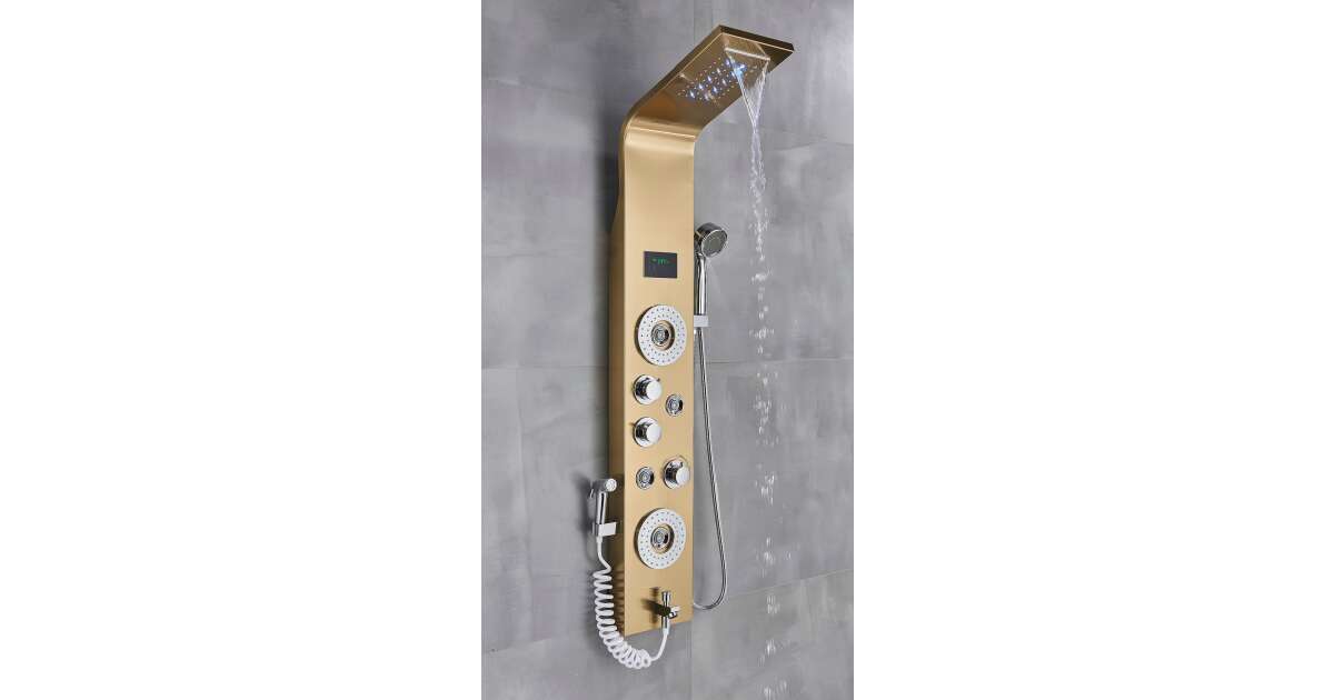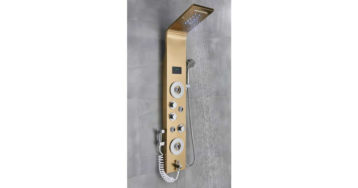 Душ панел, Blackswan, Тип M8006, златен модел с кран, дигитален дисплей, LED и SPA функции, душ биде, размер 120 см отзиви