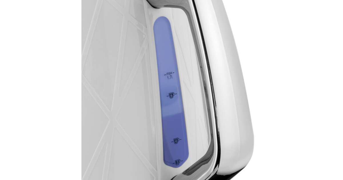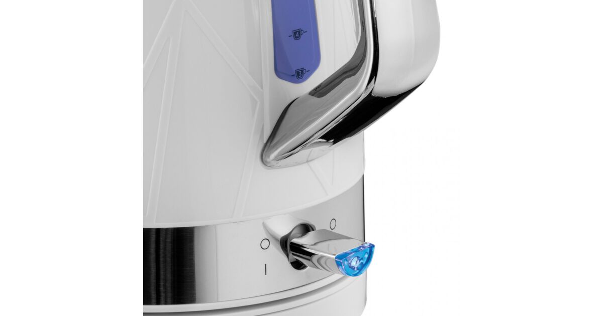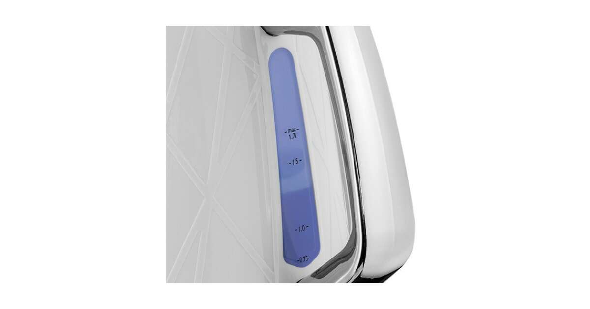Тази красива бяла електрическа кана Russell Hobbs Structure не само ще украси вашата кухня, но и ще ви впечатли с бързото си кипене и енергоспестяващата си работа. Модерният, текстуриран дизайн и синята вътрешна светлина придават елегантен вид.