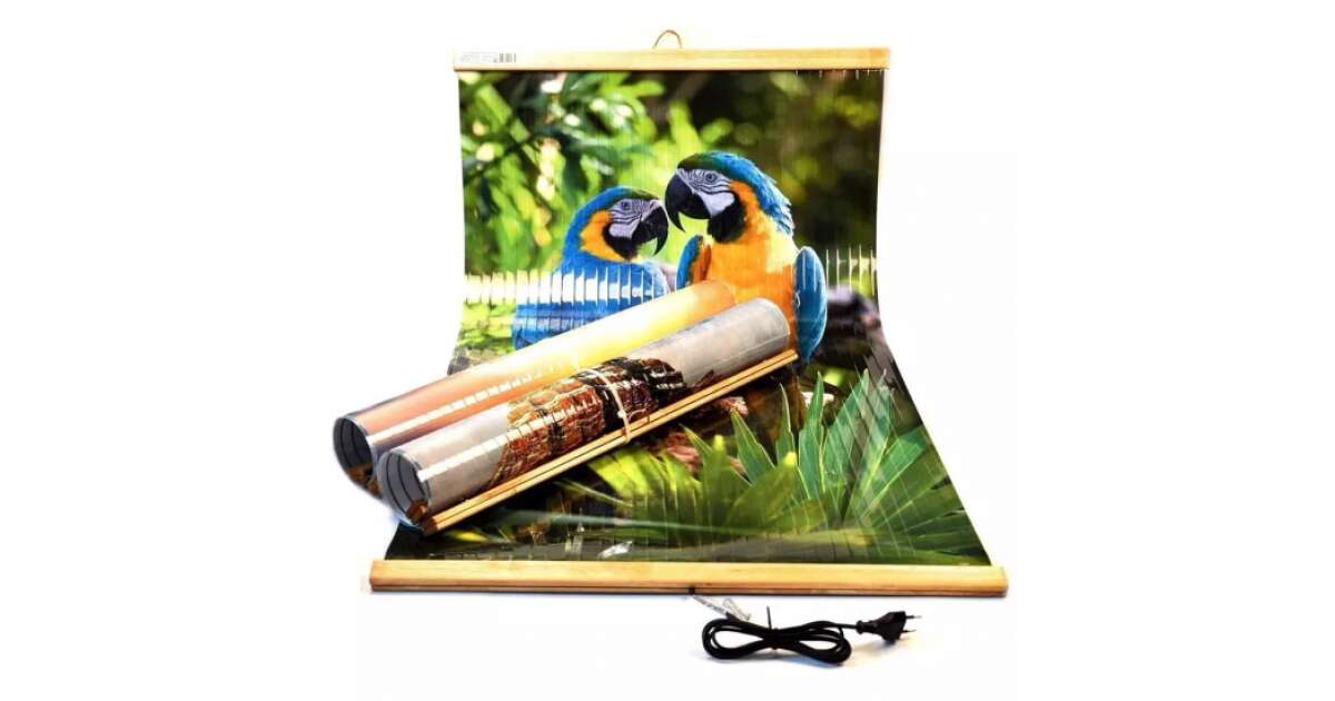 Инфрачервен панел, декоративен инфрачервен нагревателен панел, мобилен инфрачервен панел с изображение на папагал, 500W - сгъваем, 105 х 60 см описание на...