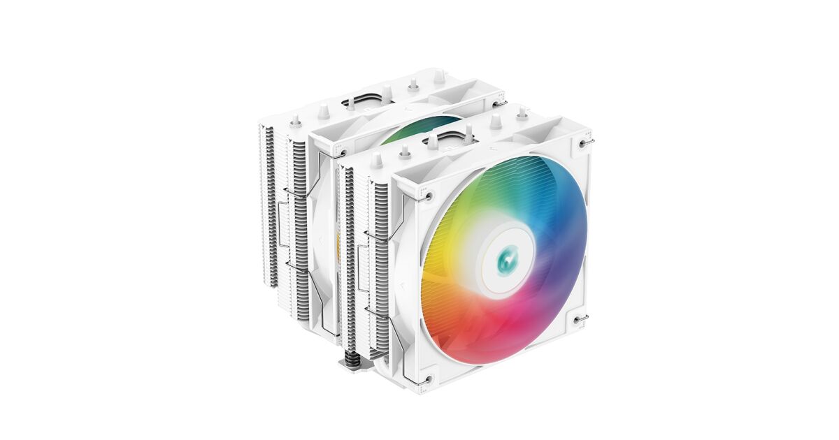 DeepCool AG620 WH е висококачествен CPU охладител с две кули, който предлага топлоотдаваща мощност до 260 W. Със своя бял дизайн и RGB осветление, той ще бъде стилно допълнение към вашия компютър.