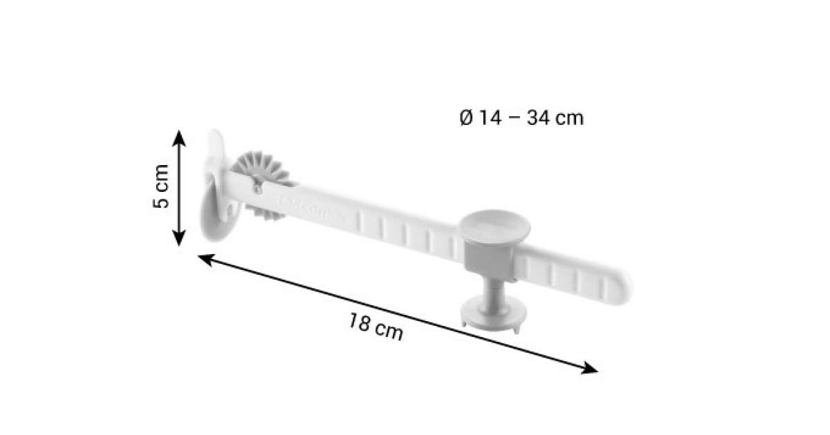С този практичен нож за тесто лесно можете да приготвяте перфектно еднакви кръгли парчета тесто с прави или вълнообразни ръбове! Благодарение на регулируемия размер винаги можете да изрязвате парчета с желания размер.