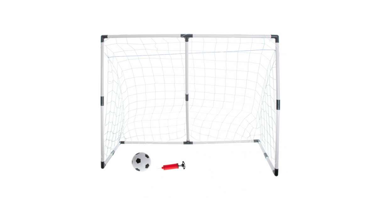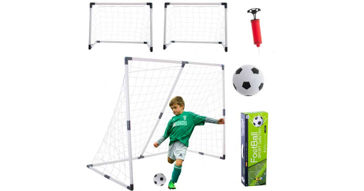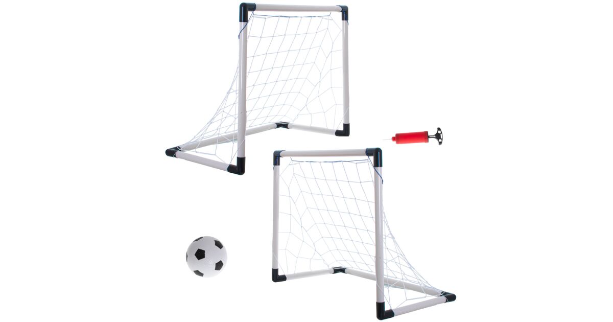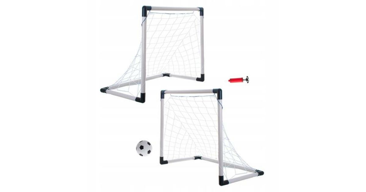 Този комплект футболни врати 2 в 1 е страхотно забавление за децата, независимо дали играят сами или с приятели. Вратата се сглобява лесно, без допълнителни инструменти, и може да се трансформира в две по-малки врати или една голяма врата, така че да бъде адаптирана към възрастта на децата и вида на играта. Комплектът включва също топка и помпа, с които лесно да надуете топката.