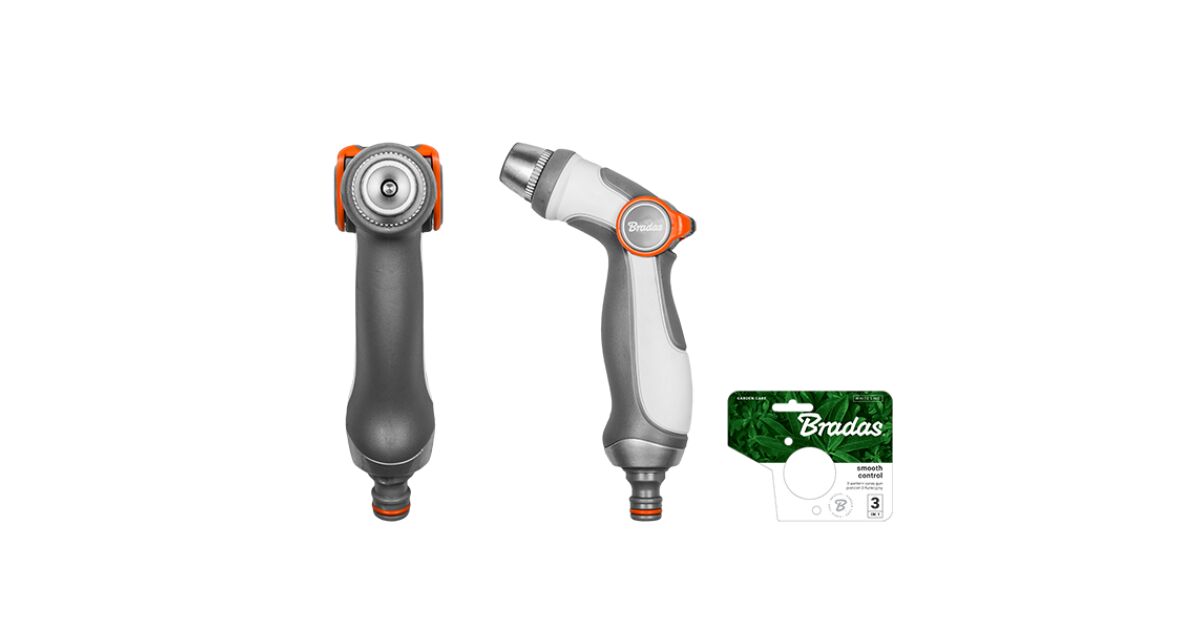 Патентованата система SMOOTH CONTROL осигурява прецизен контрол на водния поток, като по този начин се избягва загубата на вода и увреждането на растенията. Металната конструкция гарантира дълъг живот, а ергономичният дизайн осигурява удобна употреба. Благодарение на различните адаптери, може да се свърже към почти всеки стандартен маркуч.
