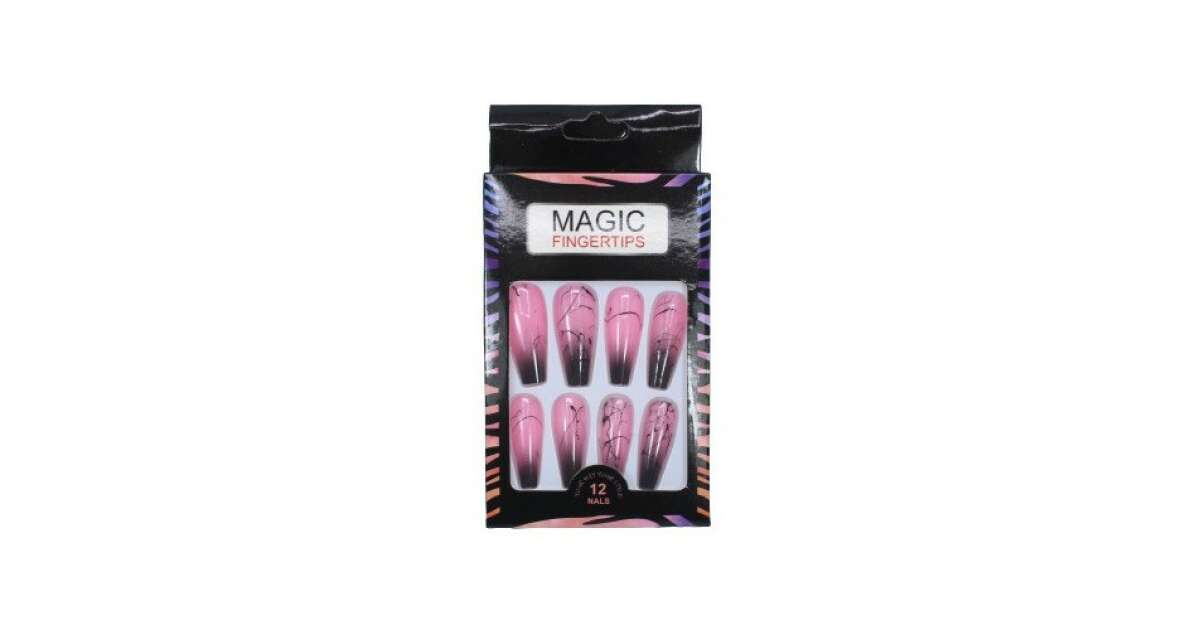 Искате блестящ маникюр с естествен вид, но нямате време да отидете на салон? С комплекта изкуствени нокти Magic Fingertips 03 можете да заслепите обкръжението си за нула време! Този комплект от 12 части включва красиви нокти в розов и черен омбре нюанс с фин мраморен мотив.