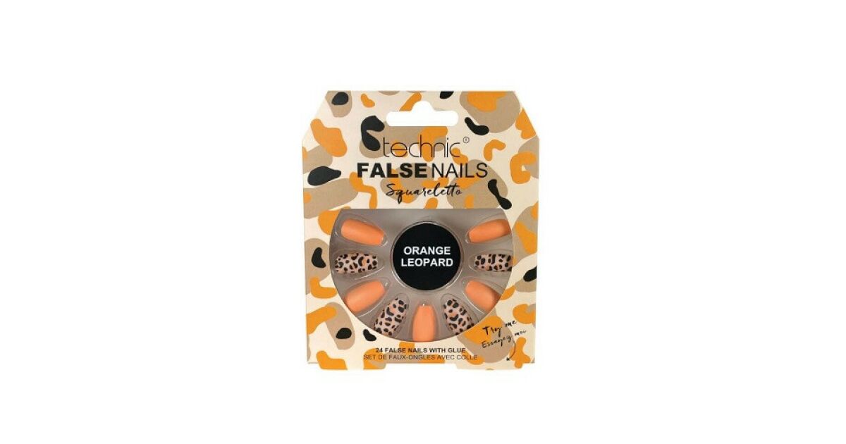 Комплект от 24 изкуствени нокътя, Technic, изкуствени нокти, Squareletto, Orange Leopard, с включено лепило