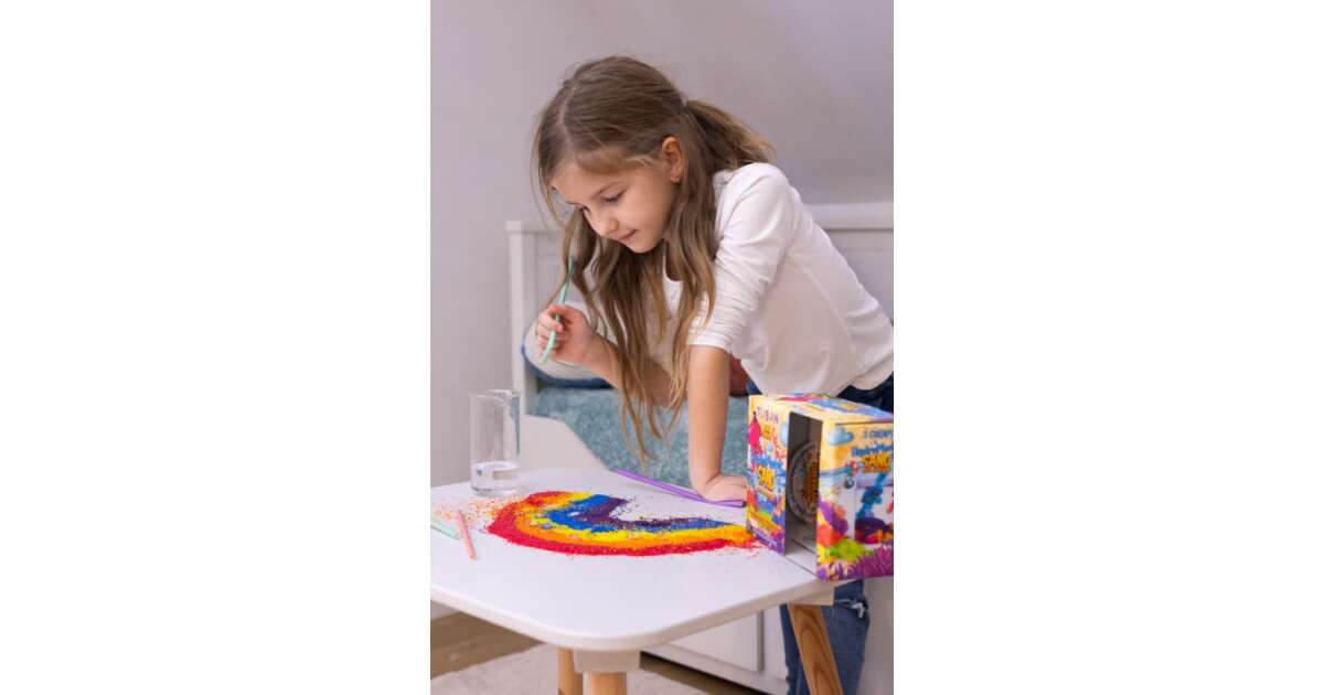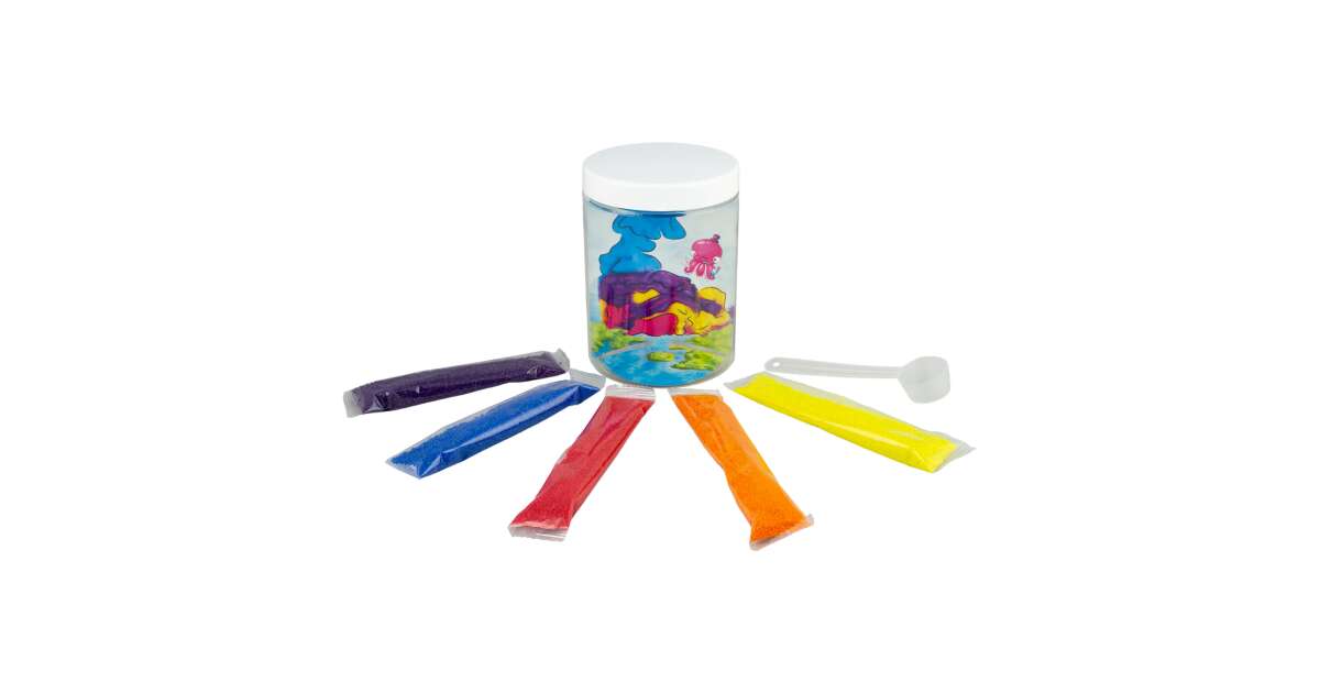 Просто изсипете пясъка в кутията и започнете да играете! Смесете цветовете, постройте замъци или провеждайте вълнуващи експерименти с вода. Пясъкът се почиства лесно и може да се използва отново и отново.